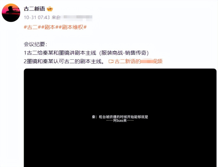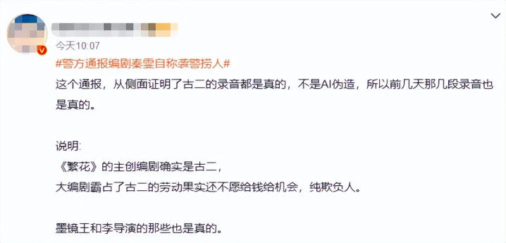 俗话说“兔子急了还咬人呢”,明明剧本的主创编剧确实是古二,功劳却全都归秦雯。